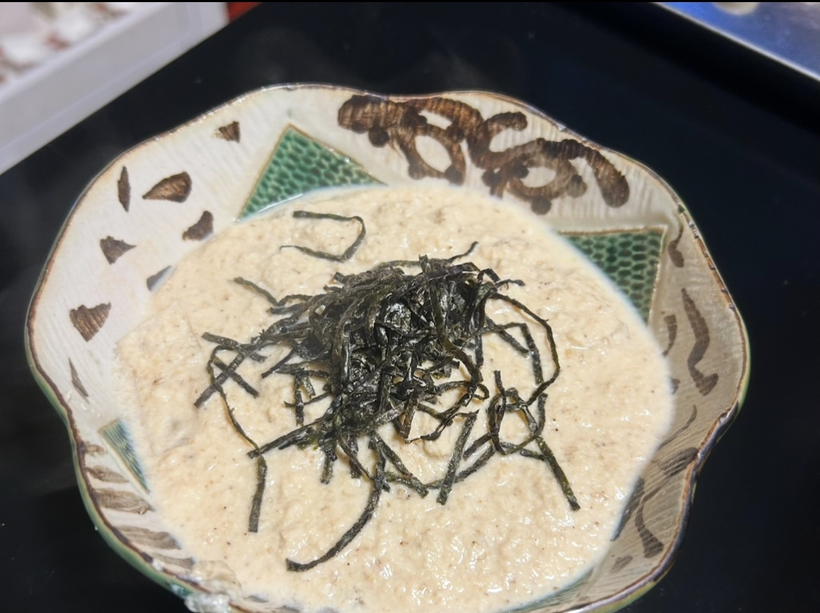 木綿豆腐をすりつぶし、醤油・ゴマ等で 味付けし、お餅に絡めます。 八兵衛ならではのメニュー♪